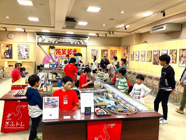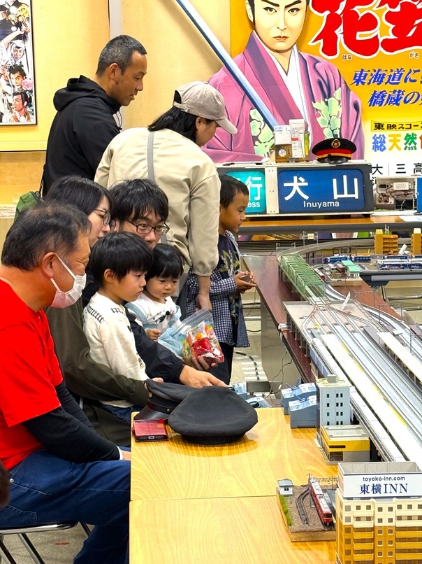 あいにくの天気でしたが、会場に設置された大型のジオラマの上には、市内の名鉄駅や、新羽島駅周辺の様子がリアルに再現され、ズラリと並んだ新幹線模型、颯爽と走る名鉄電車の姿に大人も子どもも夢中になっていました。