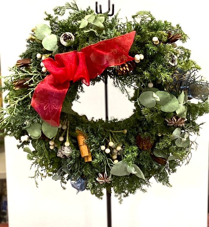 クリスマスシーズンの玄関飾りやお部屋のインテリアとして素敵な作品ができたと皆さん大満足のイベントになりました。ご参加いただいた皆さん、講師の村山さん、ありがとうございました。